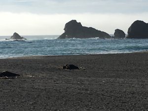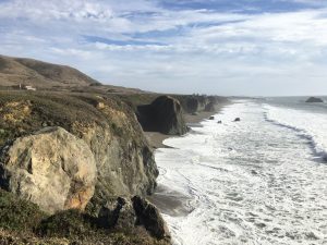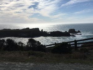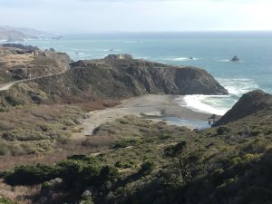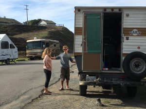 Entlang der Küste auf dem Highway 1 durchquerte ich den Kruse Rhododendron Nationalpark und fand in der Bodega Bay den angepeilten Campground. Die Dame am Empfang bedauerte, aber der Platz sei leider ausgebucht. Sie riet mir zurück zur Wright Bay zu fahren und dort einen Overflow-Platz zu beziehen. Hier angekommen, traf ich den jungen Franzosen Axel aus dem Departement Cognac und seine kalifornische Freundin Dominique.